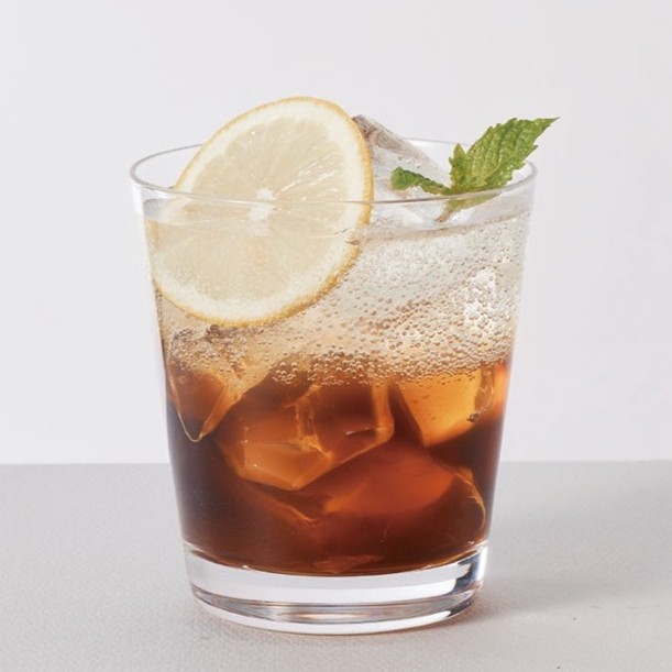 レモンの酸味とはちみつのやさしい甘み、ソーダの軽やかさが加わった、すっきりとやさしい味わい。 【材料(1人分)】 氷…適量、カフェインレス モカ&ブラジル…70ml レモン果汁…15g、はちみつ…20g 炭酸…70ml、(トッピング用)レモン輪切り…1枚 【作り方】 ①はちみつを入れた耐熱グラスをマシンにセット。【COFFEE/Iced/湯量1】モードでコーヒーを抽出。スプーンでかき混ぜ、はちみつを溶かす。 ②①のグラスに氷を入れて冷やし、氷に沿わせて炭酸を注ぐ。 ③レモン果汁を加え、輪切りレモンを添えて完成。