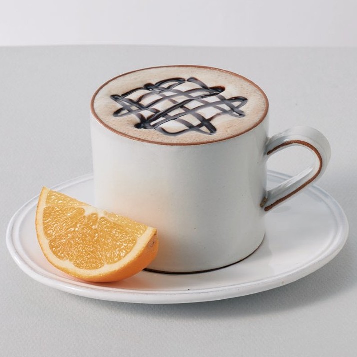 コクと香ばしい風味に、オレンジの爽やかな香りが調和した、まろやかで心ほどける味わい。 【材料(1人分)】 カフェインレス ブラジル& コロンビア…70ml、牛乳…100ml オレンジ…1/8カット、チョコレートソース…20g 【作り方】 ①カップにチョコレートソースとオレンジを入れる。 ②①のカップをマシンにセット。 【COFFEE/STRONG/湯量1】モードでコーヒーを抽出。 ③温めた牛乳を注いで完成。