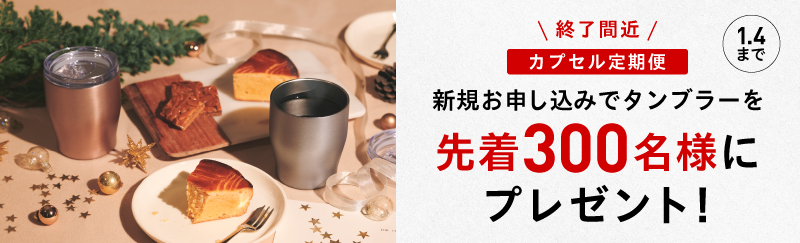 2025年12月25日(木)~2026年1月15日(木)までに「ドリップポッドスターターセット飲み比べ48杯」をご購入の方で、2026年1月20日(火)までに出荷手配済みの方が対象となります。