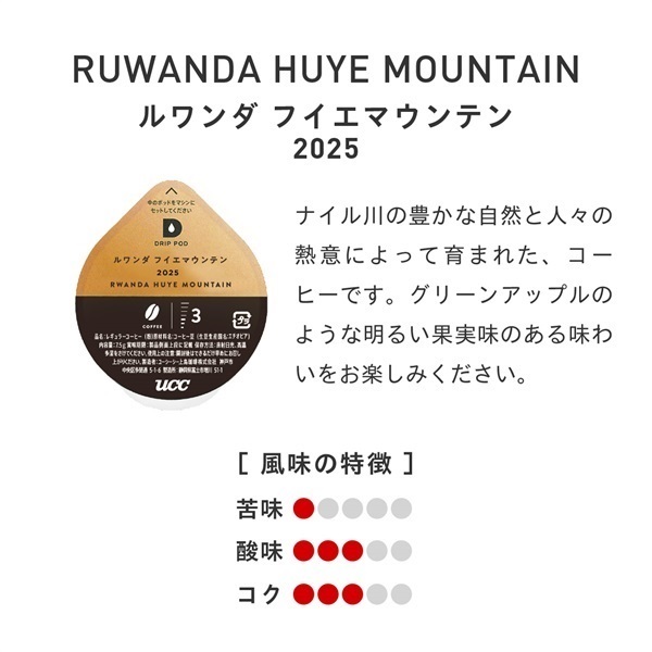 ドリップポッドの数あるカプセルの中で、フルーティーな味わいを楽しんでいただきたくセレクトされたカプセルセットが登場! グリーンアップルのような明るい果実味のある味わいの「ルワンダ フイエマウンテン 2025」、華やかな香りとフルーティーで切れの良い味わいが際立つ「モカ&キリマンジァロ」、2025年11月5日に発売したばかりの、レモンティーを思わせるすっきりとした後味が広がる「カフェインレス モカ&ブラジル」の3箱セットです。 それぞれの異なるフルーティーな味わいをお楽しみください。