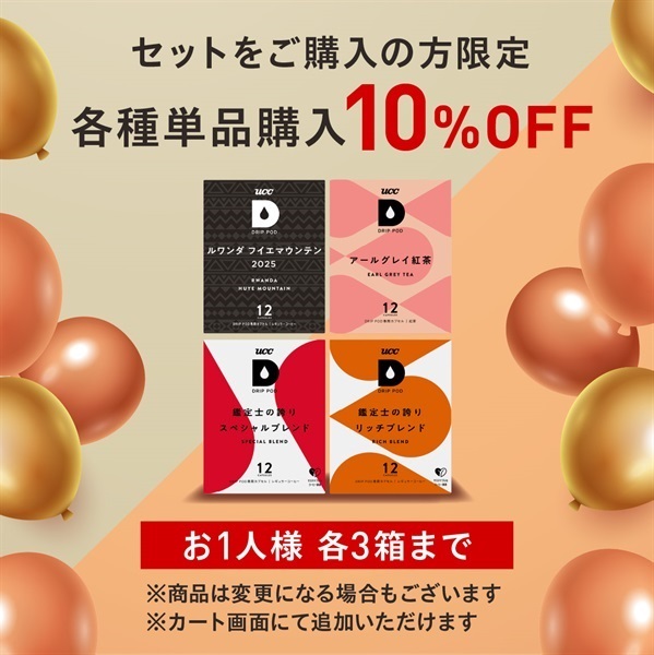 毎年大人気のスペシャルティカプセル「ウィンターブレンド」と、DRIP PODの数あるカプセルの中で人気の高いカプセル5箱をセレクトした、合計6箱のカプセルがセットになって登場! また、本セットお買い求めいただくと、マグ、グラス、ボトルの中からランダムでひとつをプレゼントいたします! 熟したベリーの濃厚な果実味に、シナモンやクローブを思わせる甘くスパイシーな香りを重ねた「ウィンターブレンド2025」1箱、DRIP PODのカプセルで最も人気のある「鑑定士の誇り スペシャルブレンド」、「鑑定士の誇り リッチブレンド」を2箱ずつ、ダークチョコレートのような甘みとコクで人気のある「グァテマラ&コロンビア」1箱の合計6箱セットです。