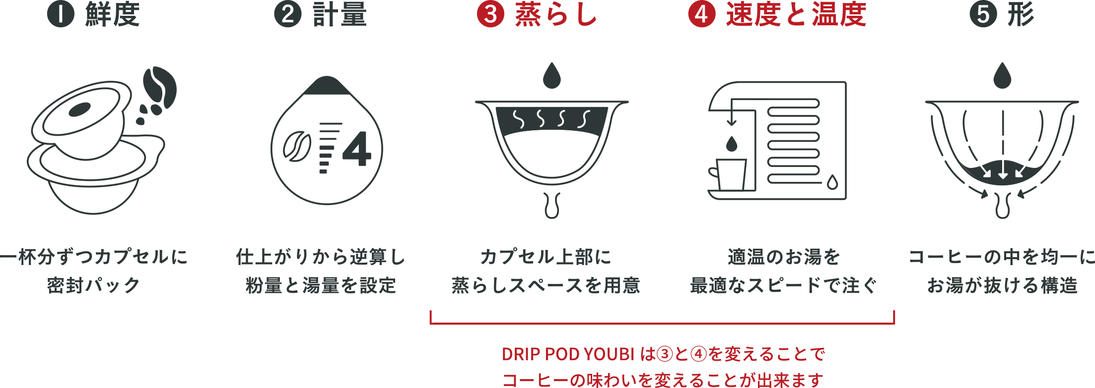 産地ごとの個性豊かな風味を引き出せるDRIP PODだからこそ、組み合わせによる変化がより分かりやすく、面白く感じられるはずです。口の中でどのような変化が起きるのか、ぜひトライしてみてください。