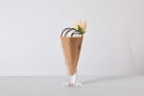 3.氷を入れたグラスに 「2」を注ぎ、軽く泡立てた生クリーム、チョコレートソース、ミントを添えて完成。